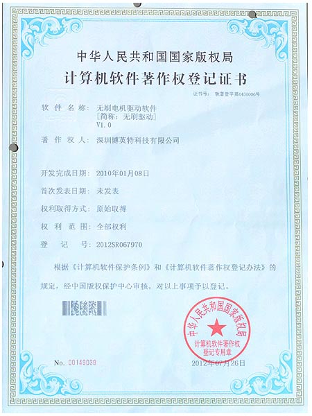 无刷驱动著作权登记证书
