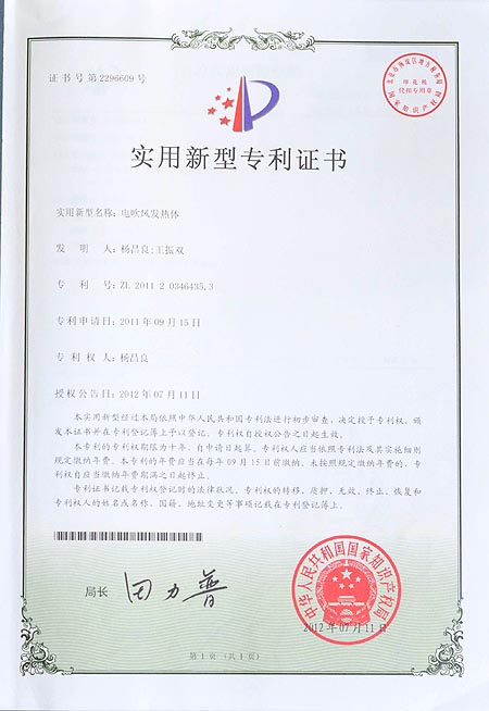 电吹风发热体专利证书