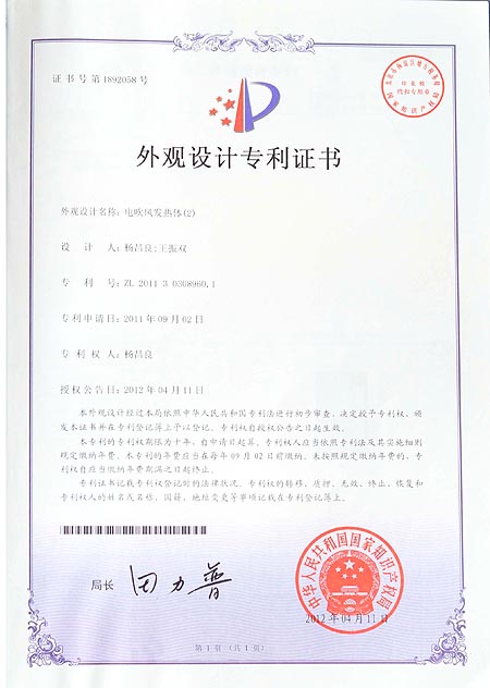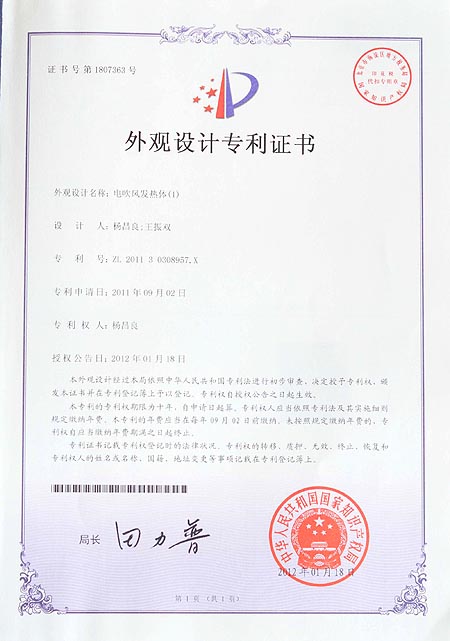 电吹风发热体(1)外观设计专利证书