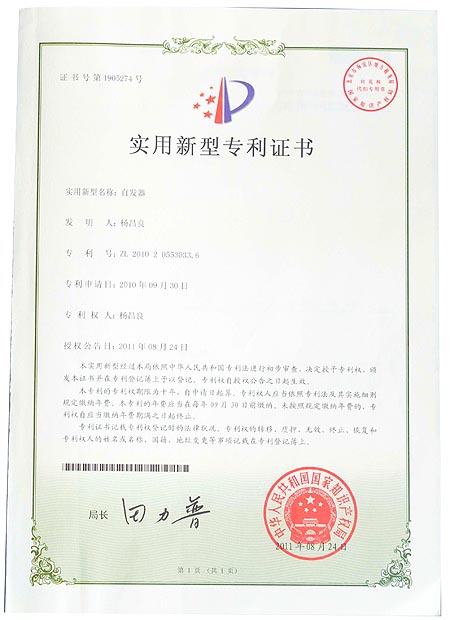 直发器实用新型专利证书