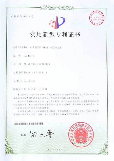 一种人机界面与杯体分离的车载杯专利...