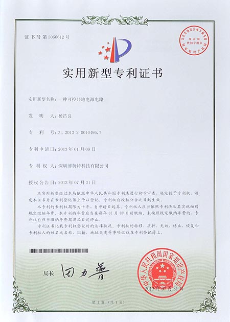 一种可控共地电源电路专利证书